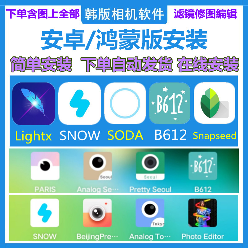 韩原版APP拍照相机SODA SNOW B612 Snapseed安卓鸿蒙软件下载安装
