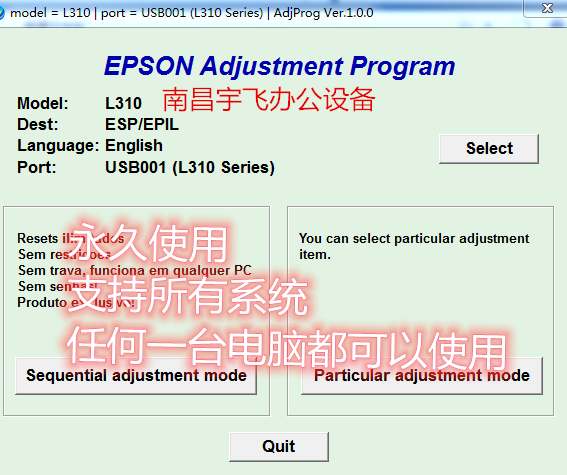 EPSON L310清零软件L313L220L360L365L130 L350 L351废墨需要维护热门设计联盟服务商