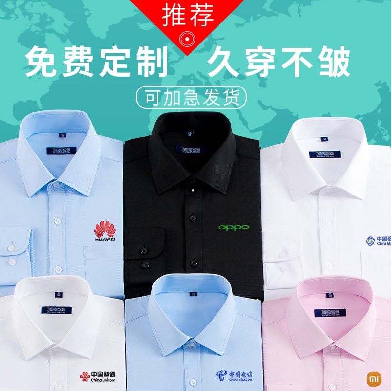 工作服衬衫定制绣logo订制衬衣印公司名称男女长短袖职业商务工装热门设计联盟服务商