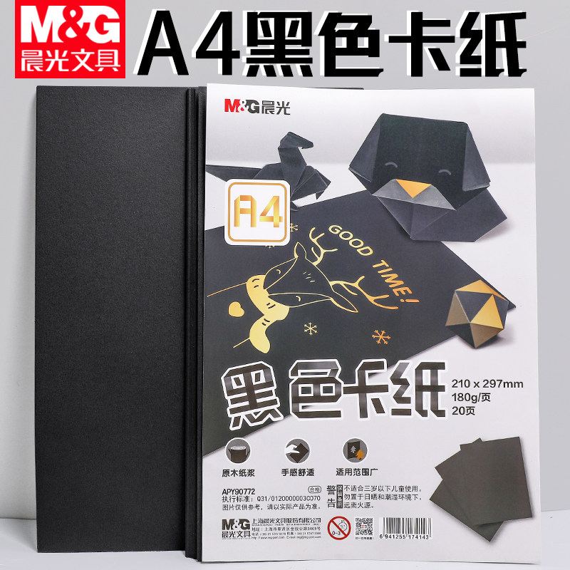 晨光A4黑色白色牛皮纸卡纸硬纸板黑卡纸大张加厚硬卡纸黑色美术专用绘画硬纸板diy手工瓦楞纸学生封面纸贺卡热门设计联盟服务商