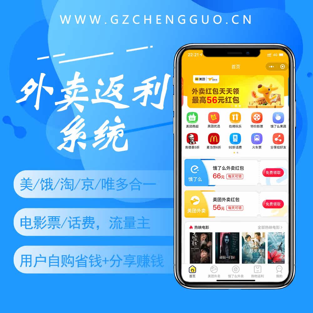 外卖返利系统公众号小程序美团淘宝客软件分销商城电影票话费源码热门设计联盟服务商