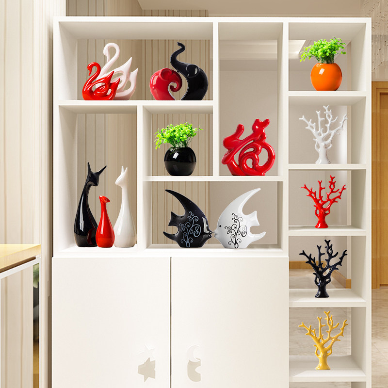 装修房子的小物件鞋架上的装饰摆件装饰品电视客厅陶瓷工艺品天鹅热门设计联盟服务商
