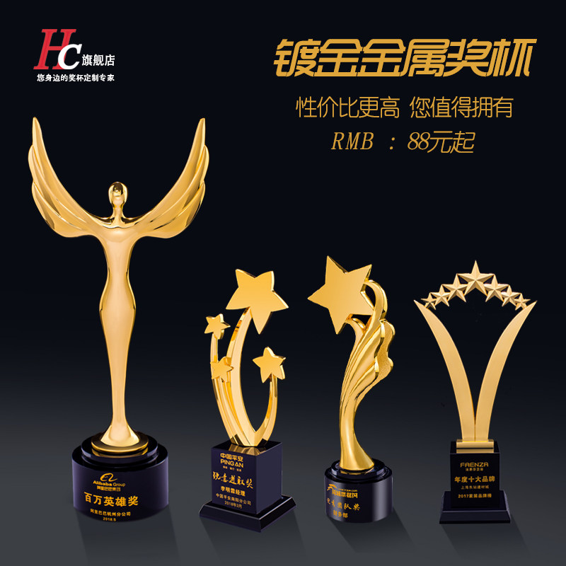 镀金金属奖杯创意水晶奖杯定制企业公司年会学校金属奖牌颁奖热门设计联盟服务商