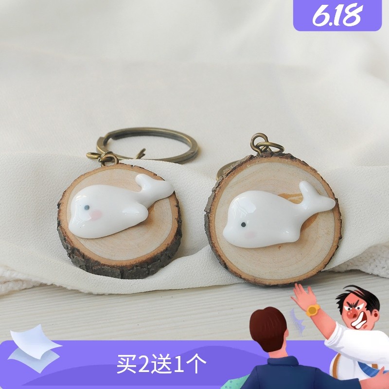 跳跳堂|景德镇原创意陶瓷 白鲸鱼香樟木立体可爱卡通清新 钥匙扣热门设计联盟服务商
