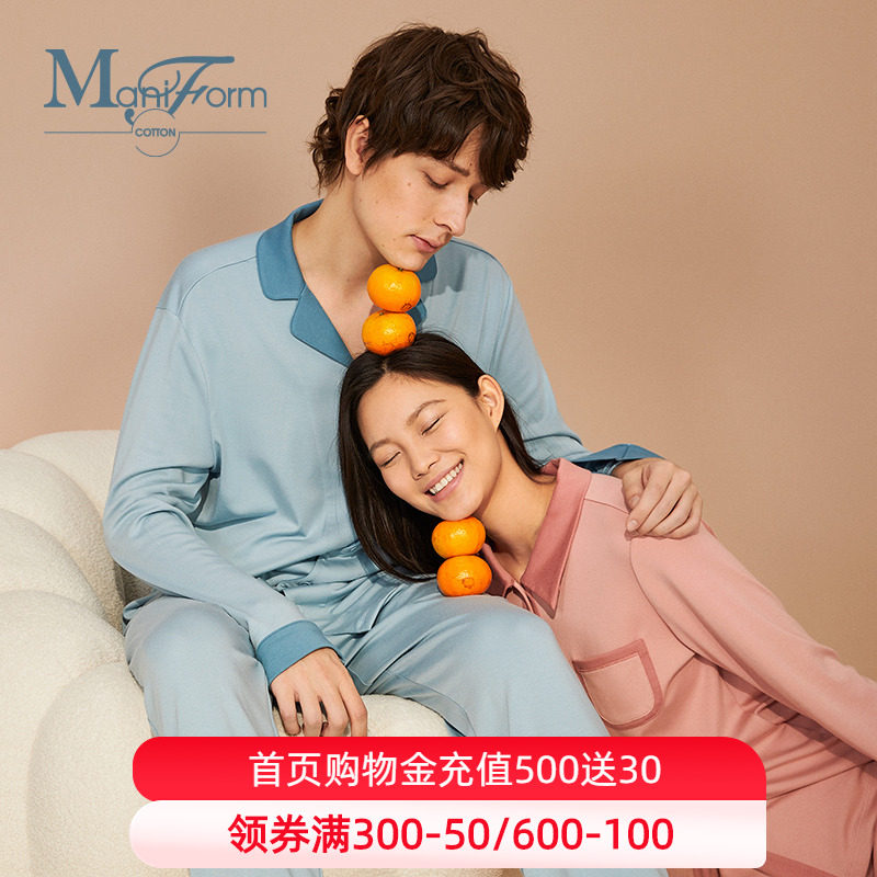 曼妮芬棉质生活翻领莫代尔针织侧边插袋睡衣套装情侣舒适家居服QQ热门设计联盟服务商