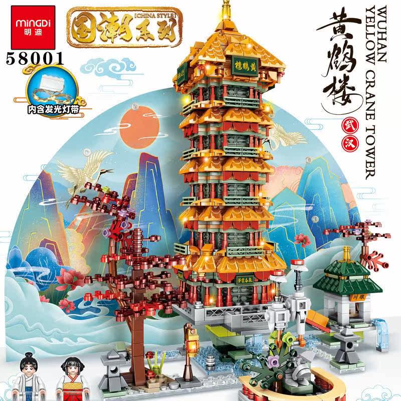兼容乐高积木国潮中华街滕王阁黄鹤楼古建筑拼插积木摆件智力玩具热门设计联盟服务商