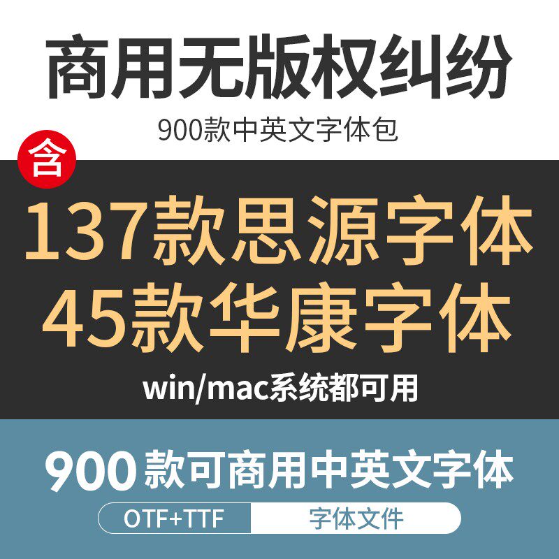 PS电商淘宝免费商用思源黑体宋体免版权中英文字体包华康字体下载热门设计联盟服务商