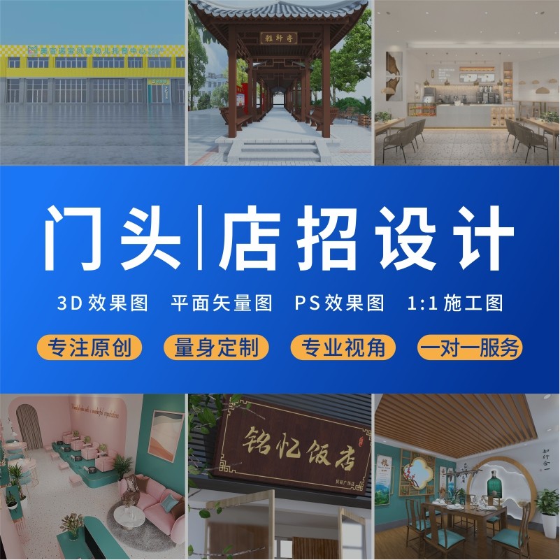 店面门头3D效果图实体店招牌匾设计店铺门面广告户外装修餐饮制作